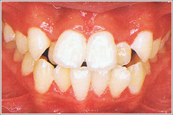 12歳を過ぎるとマルチブラケット装置を使用しきれいな歯並びにします。大人の歯(永久歯)が大きい場合は、永久歯の抜歯をして並べるスペースをつくることが多いです。